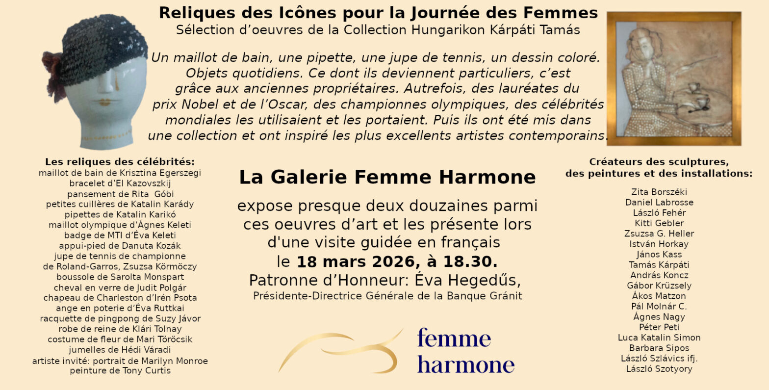 Helyszín: Femme Harmone Galéria, 1052 Budapest, Bárczy István utca 2-4.